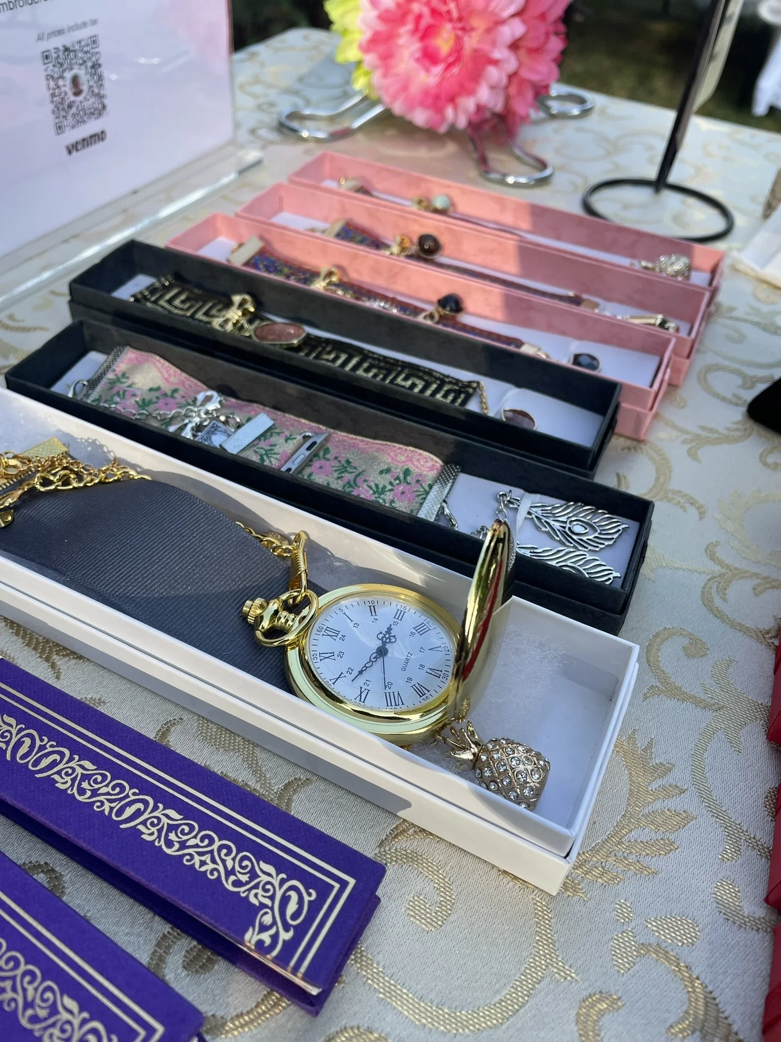 Shannah and Mark’s talents know no end. Not only are these two helping the event stay on task, they are providing a wide range of Regency Themed Wares. A hodgepodge as you will of trinkets and accessories to make your Regency costume level up.